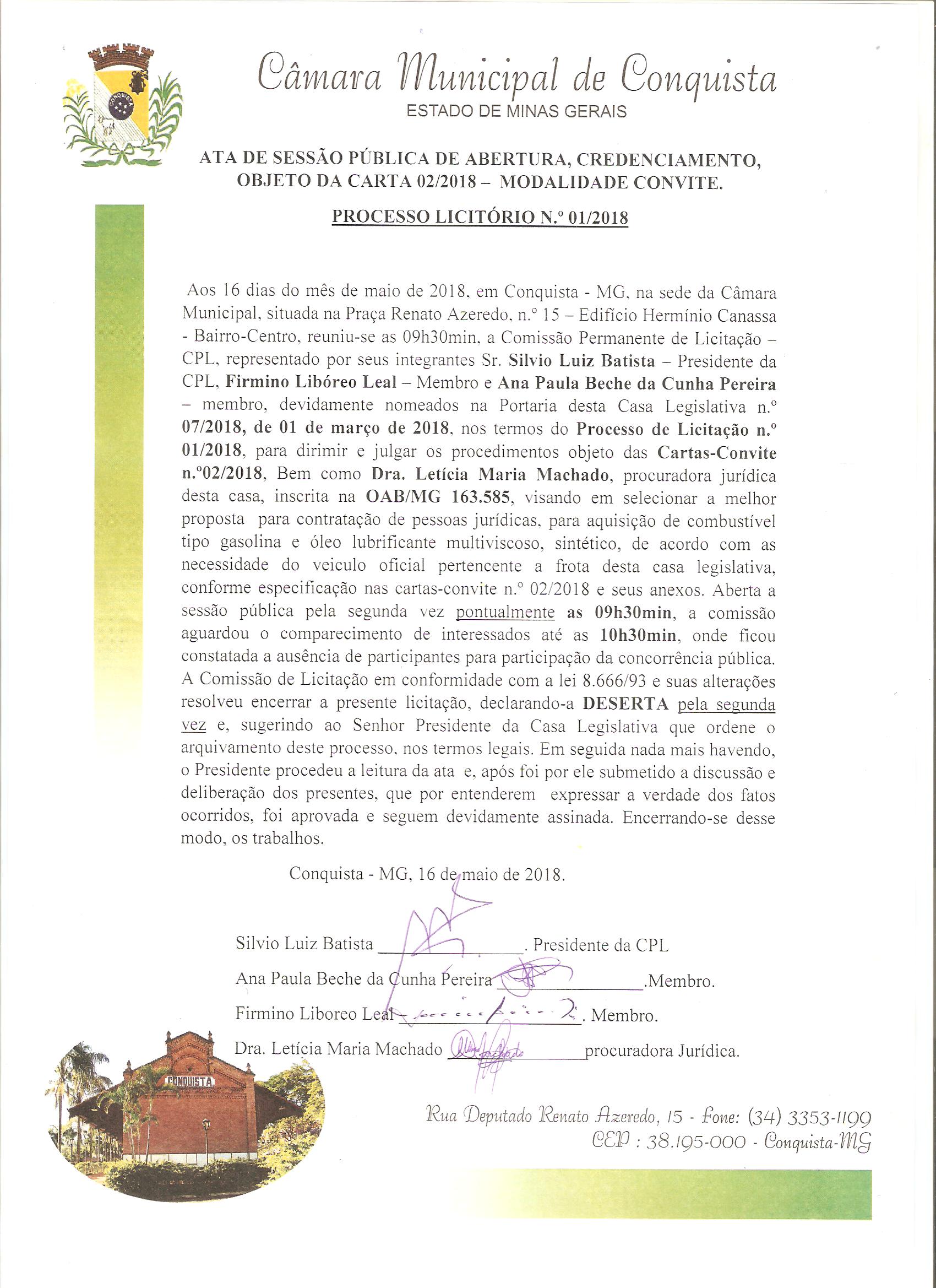 ATA DO PROCESSO LICITATÓRIO 001/2018 (CARTA 02)