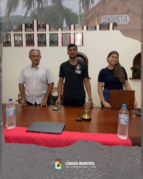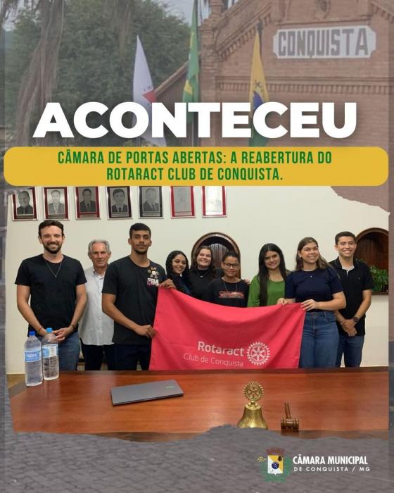 No sábado, 21 de fevereiro de 2026, a Câmara Municipal de Conquista recebeu, no Espaço Cultural Janete Clair, os integrantes do Rotaract Club de Conquista, acompanhados dos representantes do Rotary Club, Rodrigo Zara e Natal de Andrade.