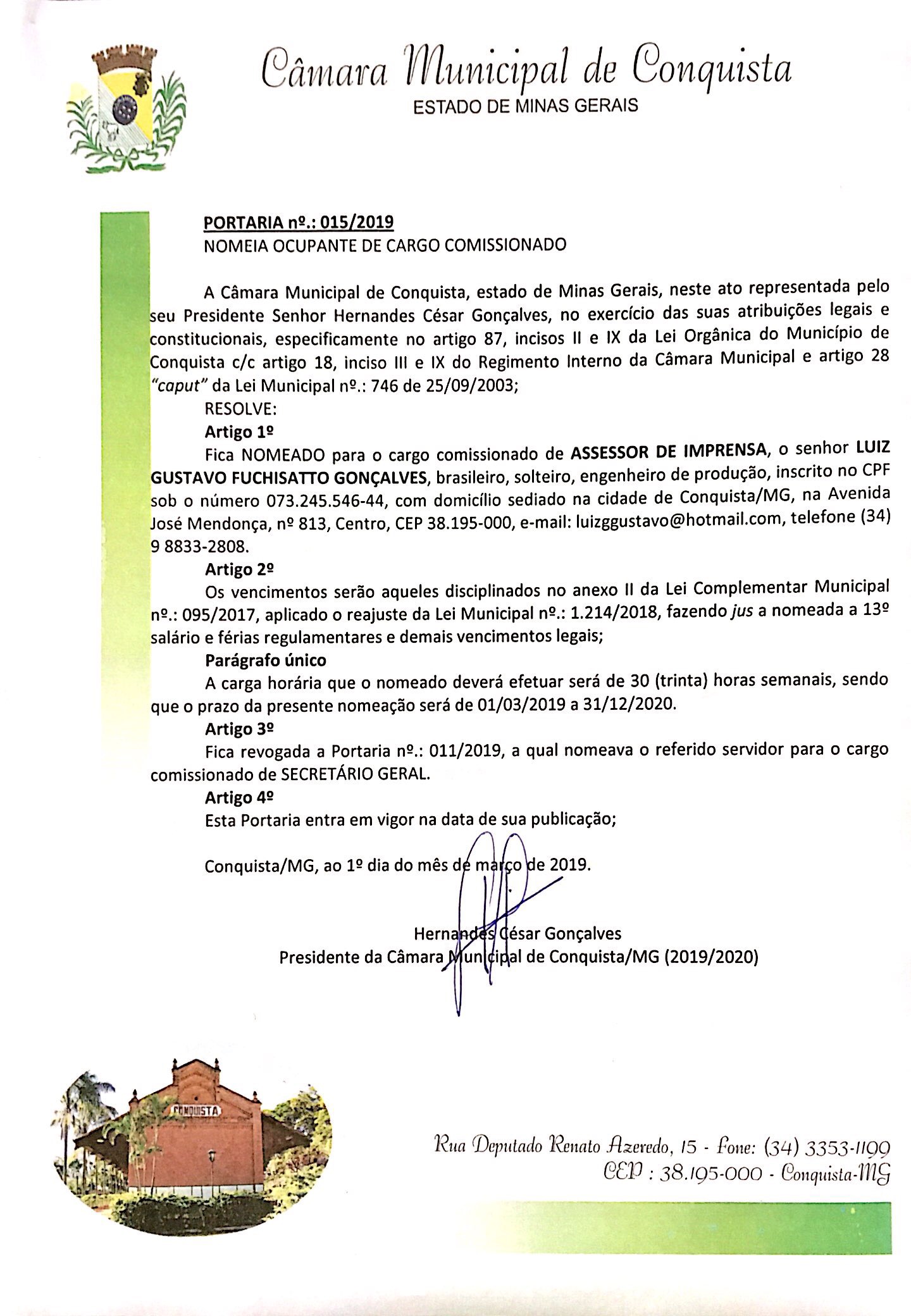 Paracer da Comissão de Legislação Justiça e Finanças sobre as contas de 2015
