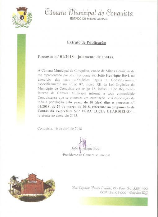 Extratos de Publicação – Processos nºs 01 e 02/2018 – Julgamento de Contas